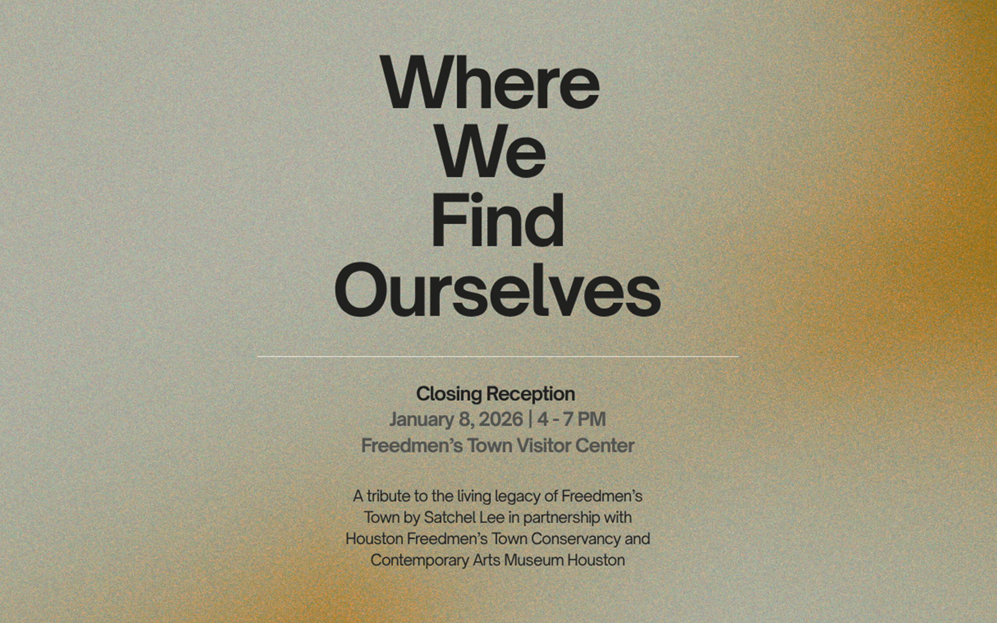 Join us for a special Happy Hour Closing Reception celebrating Where We Find Ourselves by Satchel Lee at the Freedmen’s Town Visitor Center.