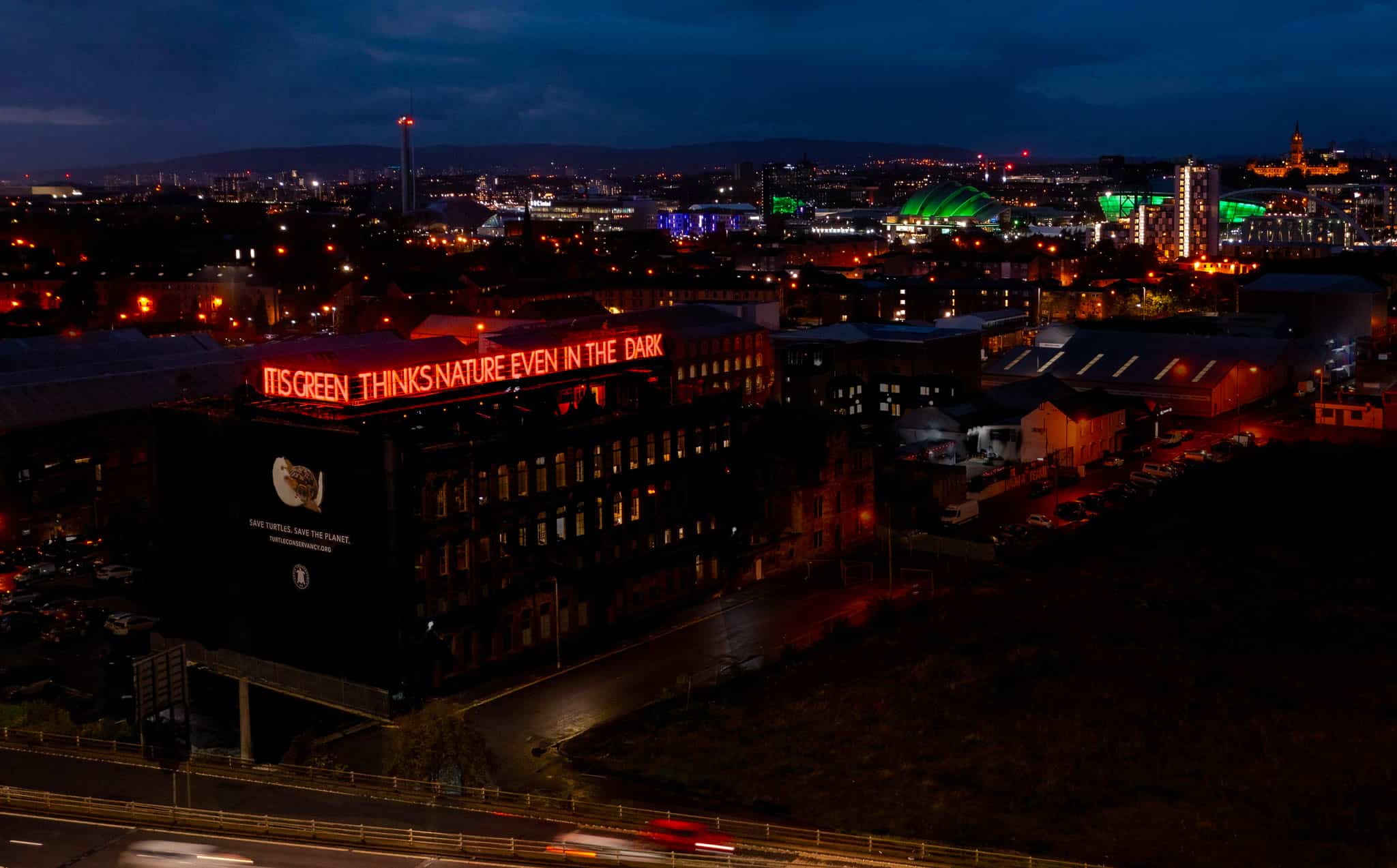 06 Teiger Mary Ellen Carroll MEC Studios 10 30 21 Indestructible Language ©2021 Mary Ellen Carroll MEC Studios Photo By Dougie Lindsay COP 26 IT IS GREEN THINKS NATURE EVEN IN THE DARK