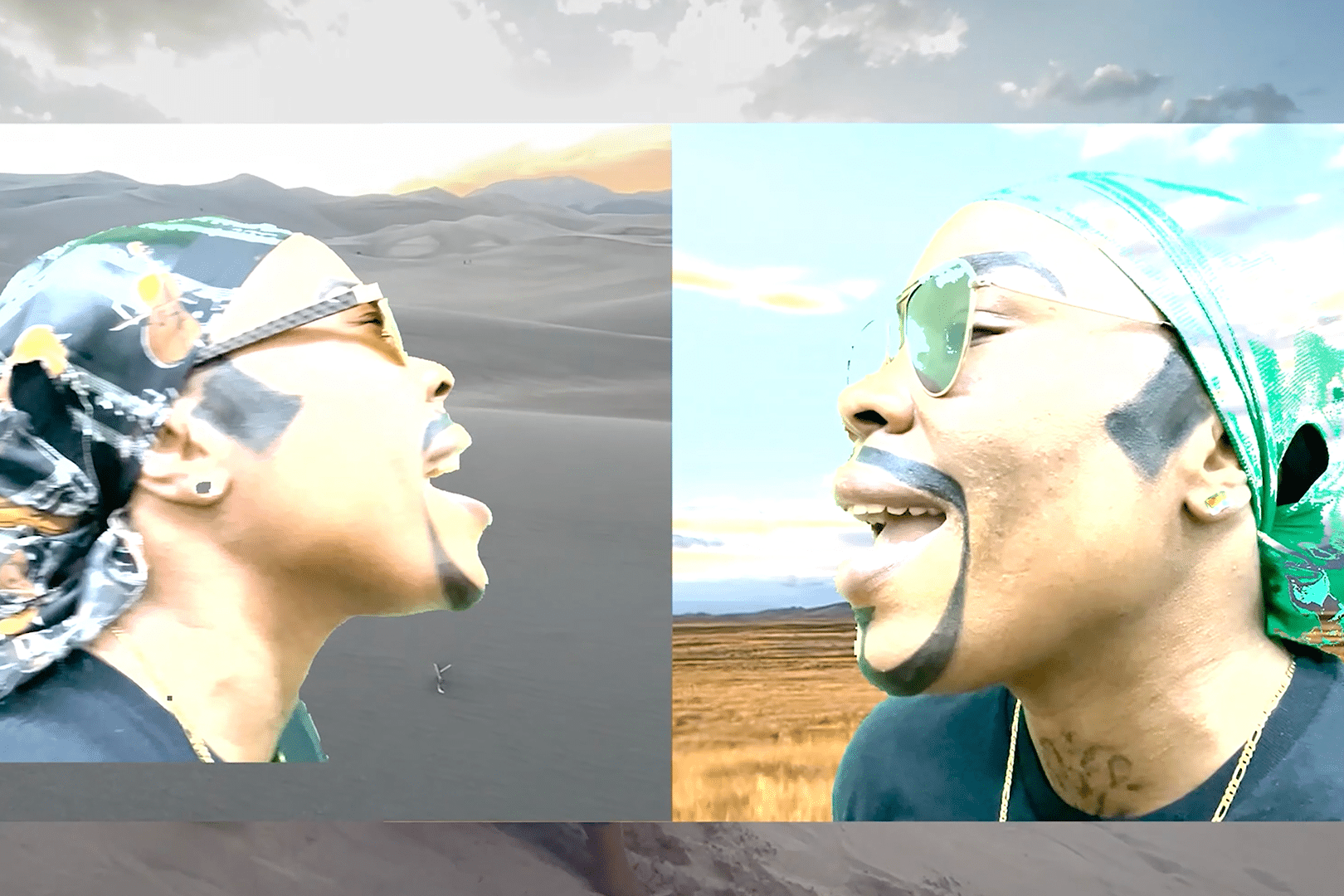 Tommy Tonight, Slow Down (Love Song for the Great Sand Dunes), 2023. Single-channel video with sound. Duration: 4:51 minutes. Videography: Adam Gildar, Miranda Lash; Editors: Tomashi Jackson, Fahmy Abdisheikh, McCristol Harris III; Thanks to The Frontier Drive Inn and Alluvium Studio, Center, Colorado. Courtesy the artist and Tilton Gallery.